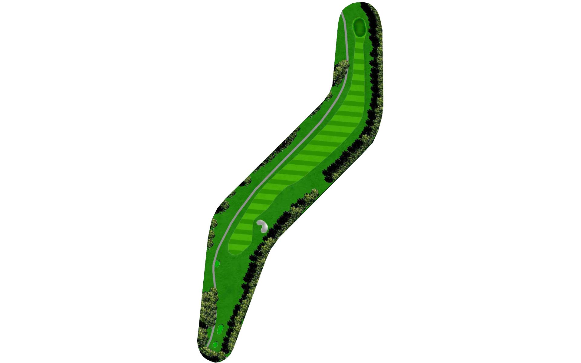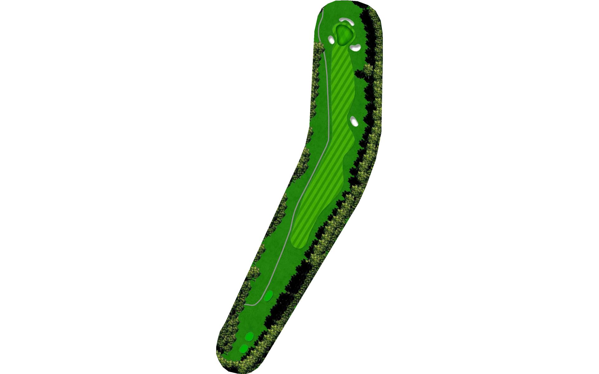 A long straight forward par 4. The hardest thing on this hole is to hit enough club on the approach. The uphill approach requires almost 1 ½ clubs more. The green slopes from back right to front left more severely than you may first think.